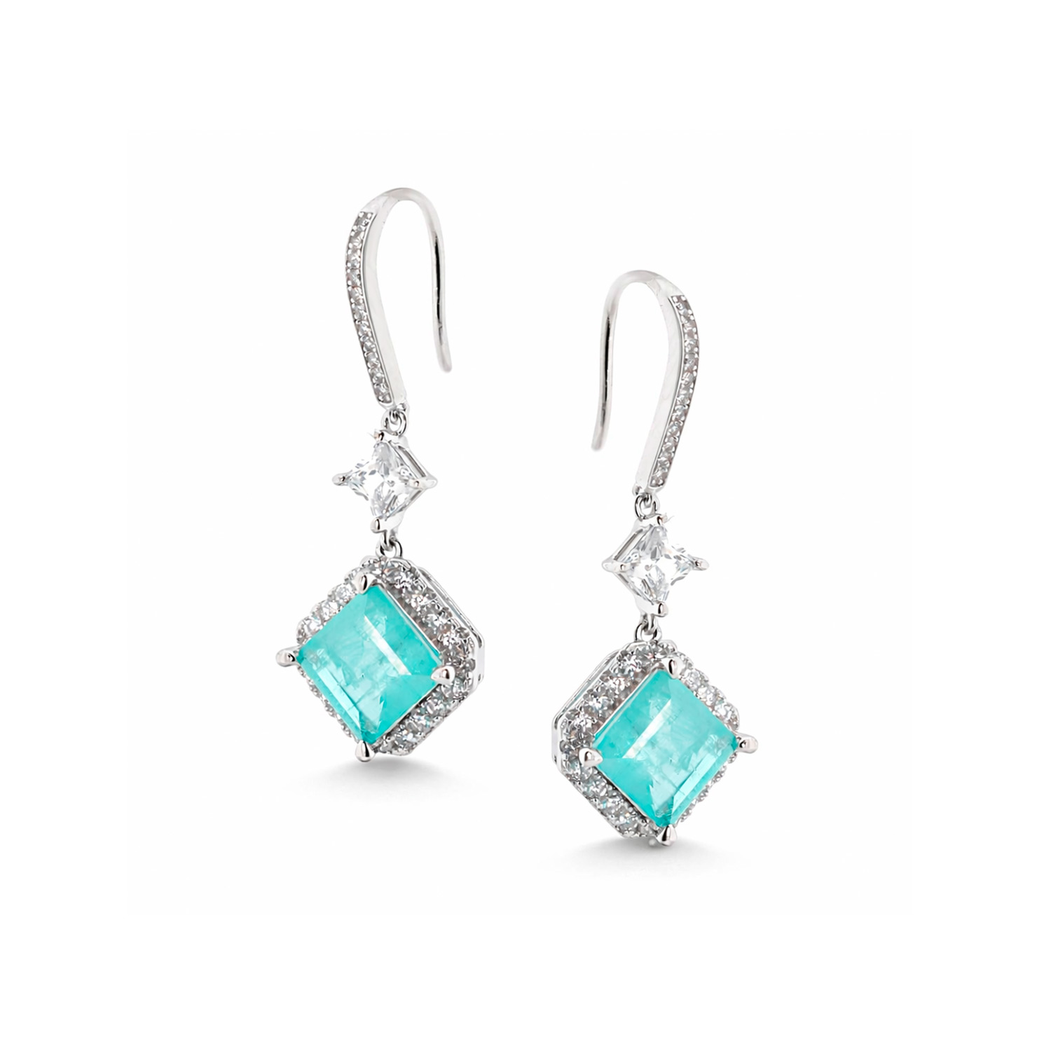 Ohrhänger aus 925 Silber mit rautenförmigen türkisfarbenen Zirkonia