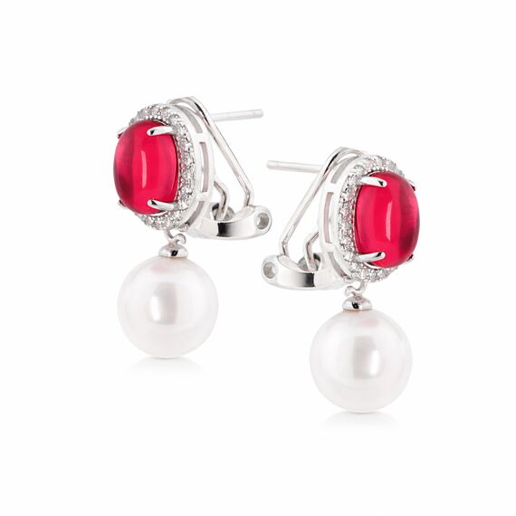 Ohrringe aus 925 Silber mit Perlen und grünen oder roten Zirkonia