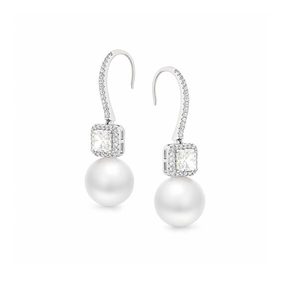 Elegante Ohrhänger aus 925 Sterling Silber mit quadratischem Zirkonia und Perlenanhänger