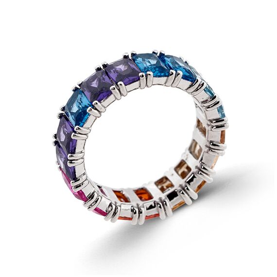 Damenring aus 925 Silber mit bunten Zirkonia, Breite ca. 8 mm