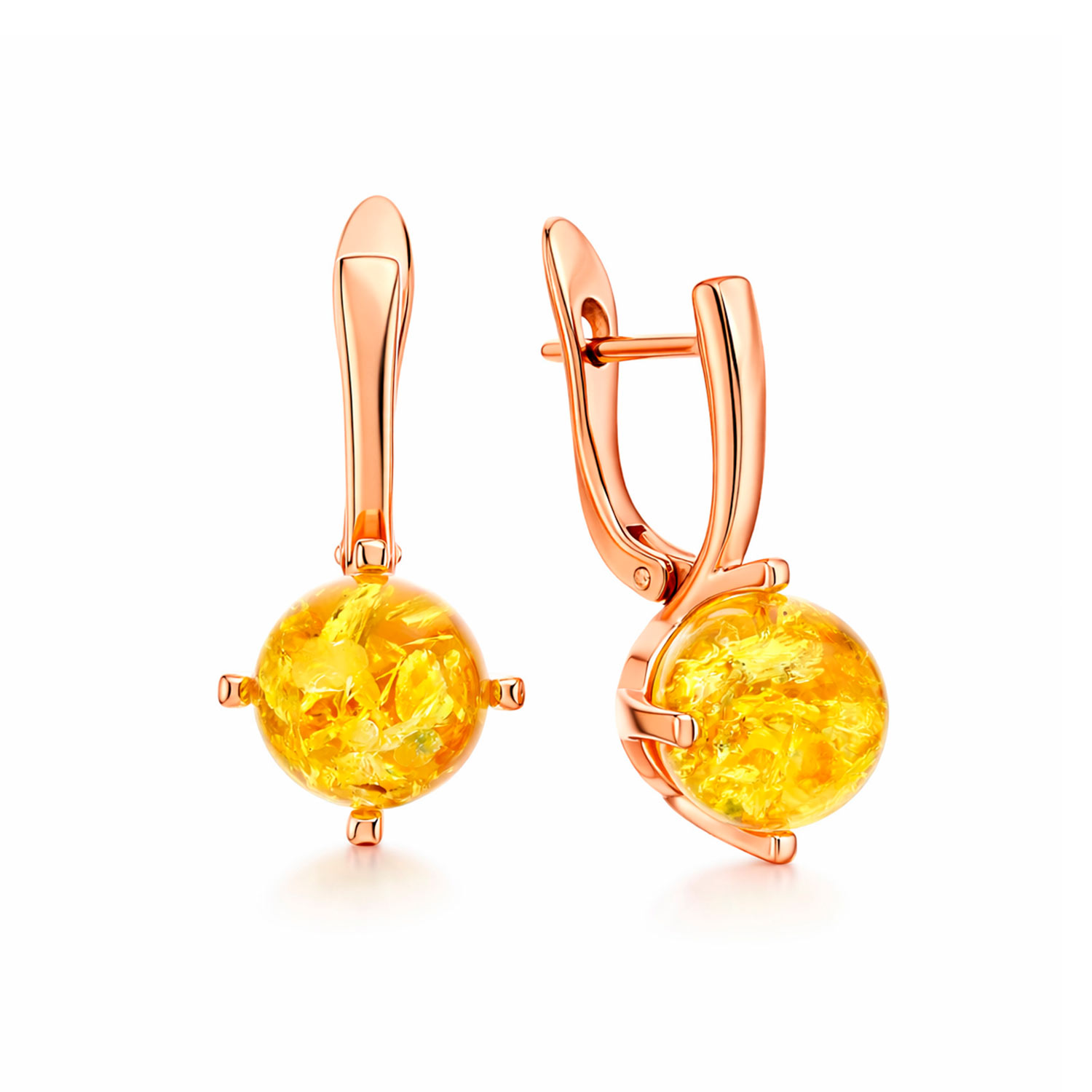 Verleihen Sie Ihrem Look einen Hauch von natürlicher Eleganz mit diesen stilvollen Ohrringen aus vergoldetem 925er Sterling-Silber, veredelt mit edlem Lemon-Bernstein. Die warme Rosévergoldung harmoniert perfekt mit dem leuchtend gelben Farbton des Bernsteins, der durch seine faszinierende Textur in der Lichtreflexion lebendig wirkt.Die runden Bernstein-Kugeln werden von einer sicheren 4-Krappen-Fassung gehalten, die sowohl Stabilität als auch ein offenes Design bietet, damit das Licht den Bernstein durchdringen und sein volles Farbspiel entfalten kann. Der komfortable Klappverschluss sorgt für einfaches Anlegen und sicheren Halt – ideal für den täglichen Gebrauch sowie für besondere Anlässe.