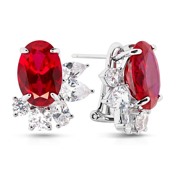 Ohrringe aus 925 Silber mit roten und farblosen Zirkonia