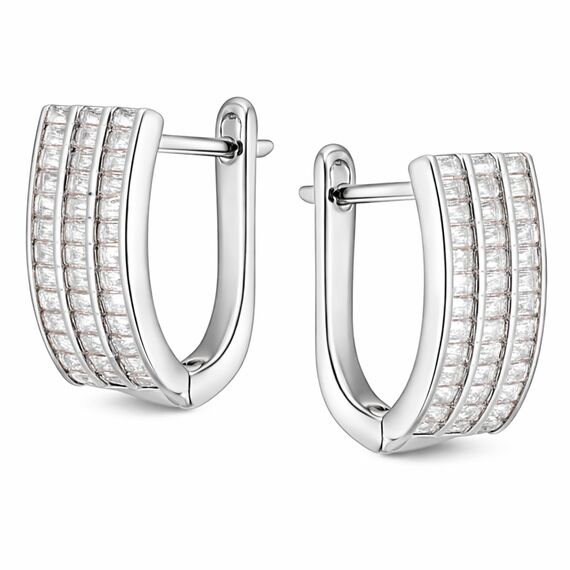 Ohrringe aus 925 Silber mit kleinen rechteckigen Zirkonia übersät