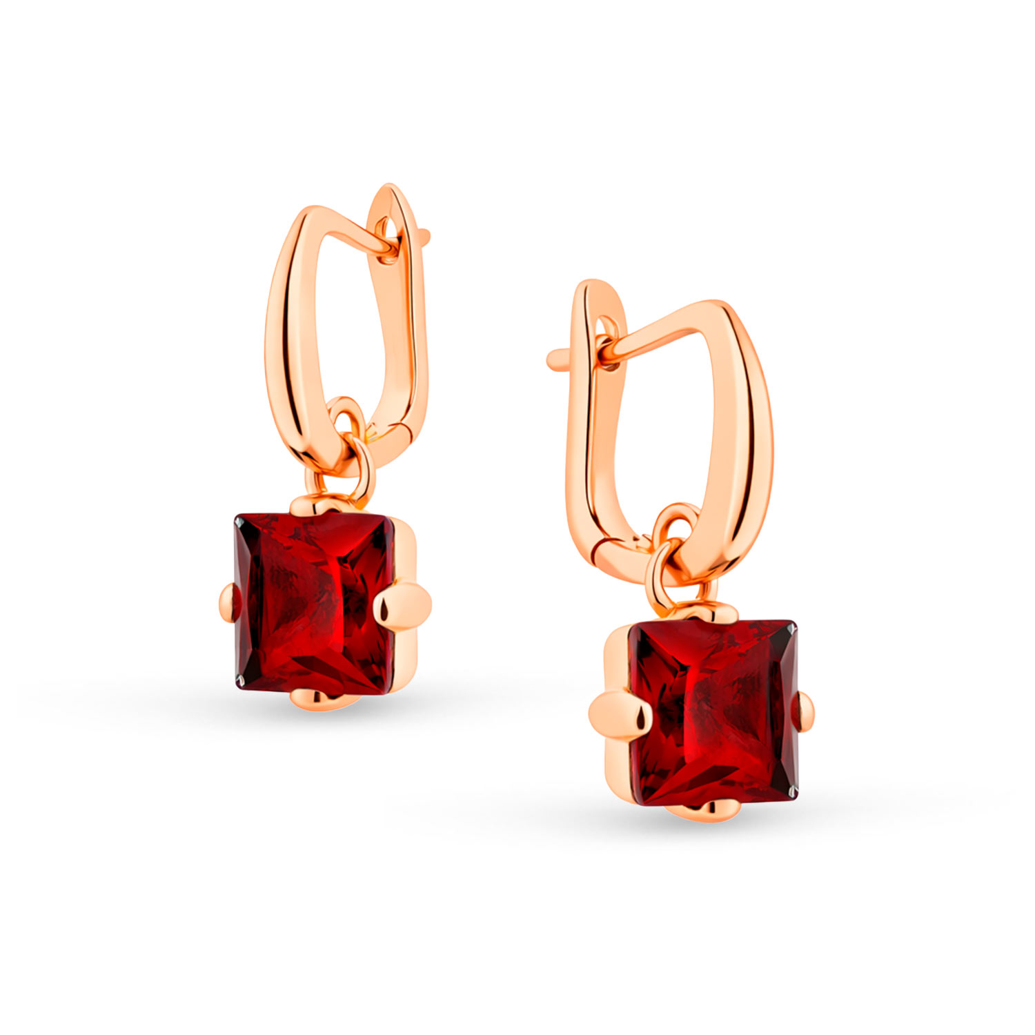 Ohrringe aus vergoldetem 925 Silber mit roten Glaskristallen