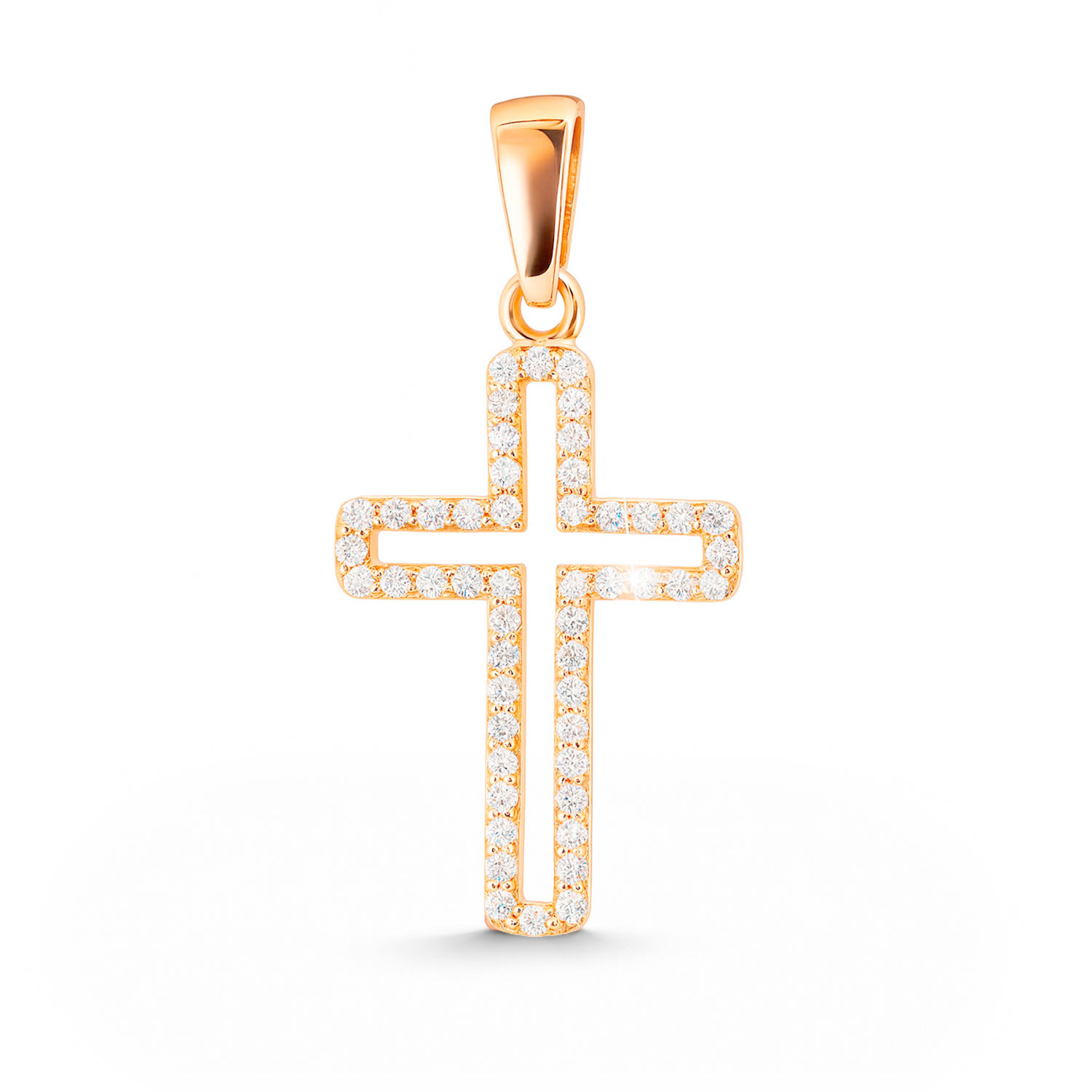 Kreuz Anhänger aus 585 Rotgold mit Zirkonia