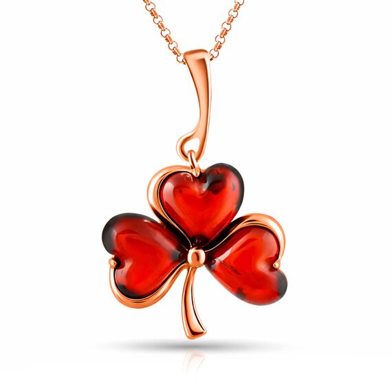 Schmuckanhänger aus vergoldetem 925 Sterlingsilber mit herzförmigen Bernsteinen "Kleeblatt"