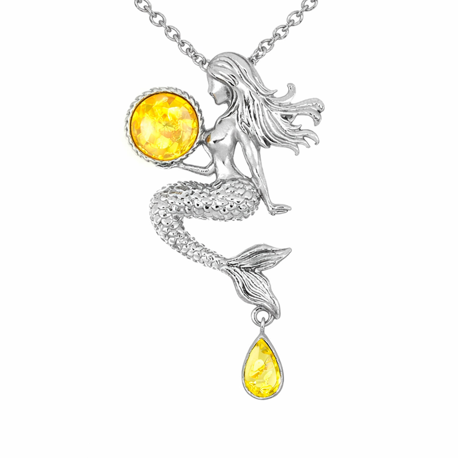 Schmuckanhänger aus 925 Sterlingsilber mit Lemon-Bernsteinen "Meerjungfrau"- rhodiniert