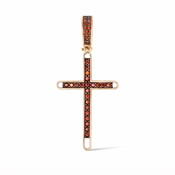 Anhänger Kreuz aus 585 Rotgold mit roten Zirkonia