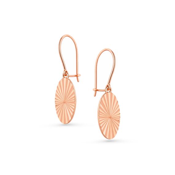 Strukturierte flache ovale Ohrringe aus 585 Rotgold mit Diamantschliff