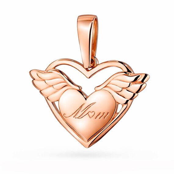 Herzförmiger Anhänger "Mom" mit Engelsflügeln aus 585 Rotgold zum Muttertag