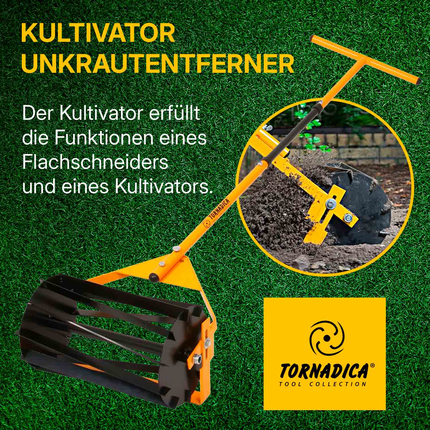 TORNADICA Bodenfräse-Handkultivator für Garten und Gewächshaus