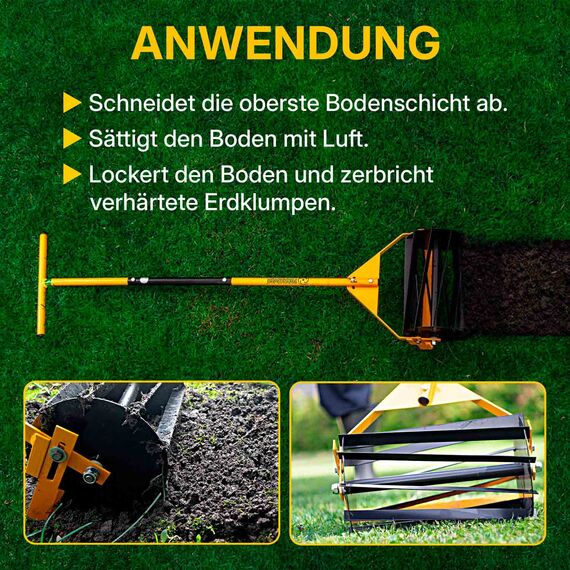 Der Kultivator ist ein Gartengerät, welches mit einer robusten Metalltrommel und Spezialplatten aus Metall ausgestattet ist. Darüber hinaus befindet sich hinter der Trommel des Kultivators ein Messer, welches die eigentliche Arbeit - das Entfernen von Unkraut - verrichtet. Bewegen Sie den Kultivator über die betroffenen Stellen Ihres Rasens sorgsam vor und wieder zurück. Die harten Erdklumpen werden dabei aufgebrochen, sodass sich der Boden lockert. So kann dieser wieder optimal atmen. Gleichzeitig werden durch die Fräse die Wurzeln des Unkrauts gekappt. Ein spezielles einstellbares Messer, das hinter der Trommel installiert ist, lockert den Boden in einer Tiefe bis zu 5 cm und die Breite des Verarbeitungsstreifens beträgt 35-40 cm.TORNADICA Bodenfräse kaufen: Vorteile im Überblick