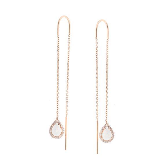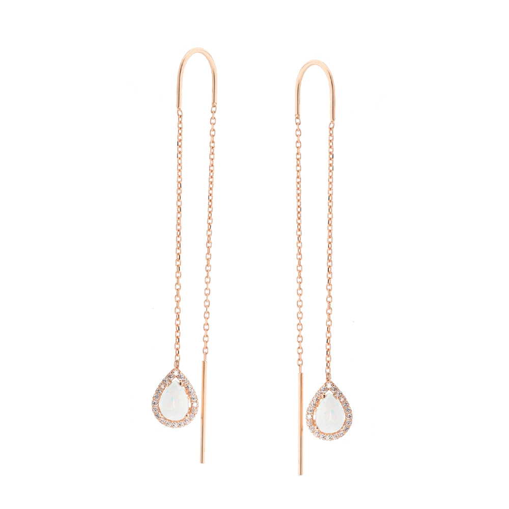 Ketten-Ohrringe aus 585 Rotgold mit weißem Opal in Tropfenform
