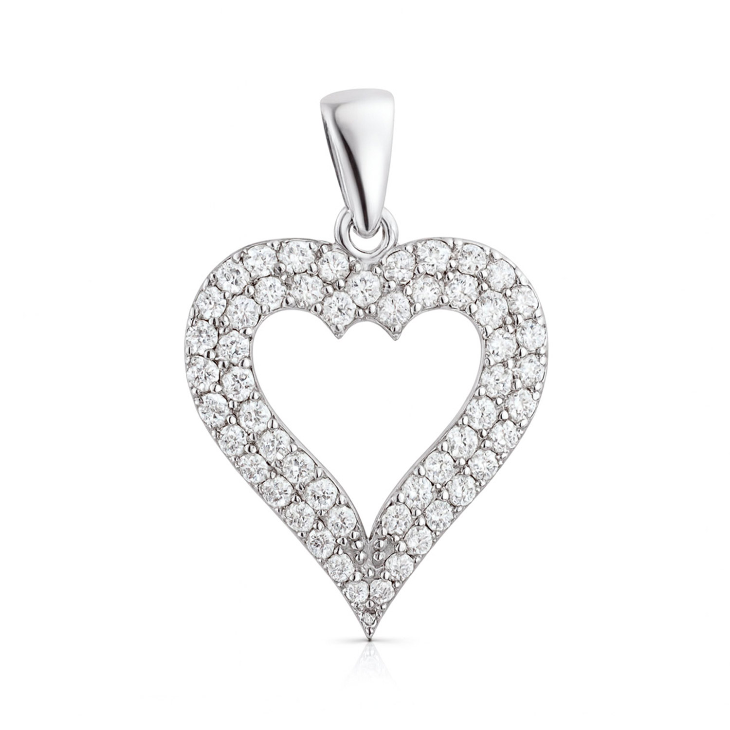 Dieser bezaubernde Herzanhänger aus 925 Sterling Silber vereint modernes Design mit zeitloser Symbolkraft. Das Herz ist kunstvoll gearbeitet mit einer doppelten Reihe funkelnder Zirkonia-Steine, die sich um eine zentrale Öffnung schmiegen – ein Spiel aus Glanz und Leere, das Tiefe und Eleganz zugleich symbolisiert. Die mittige Aussparung betont die Leichtigkeit des Designs und lässt den Anhänger trotz seiner Aussagekraft zart und tragbar wirken.- Modernes Design: Die doppelte Zirkonia-Reihe mit zentraler Öffnung symbolisiert Verbindung und Offenheit.