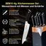 - Chefkochmesser: 8" x 2.5 mm / 33x4.5x2 cm / 208 g