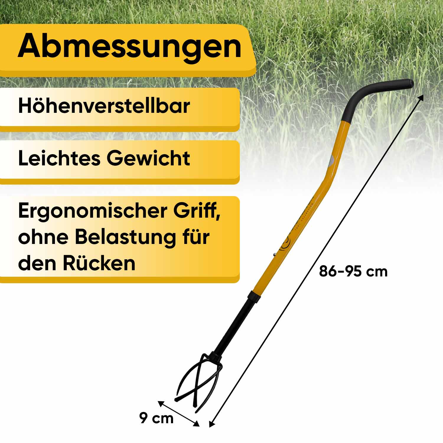 • Entlasten Sie Ihren Rücken. Mit der Gartenkralle entlasten Sie Ihren Rücken, der bei der Arbeit mit dem Gerät gerade bleibt.