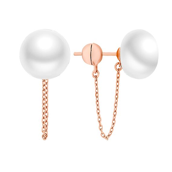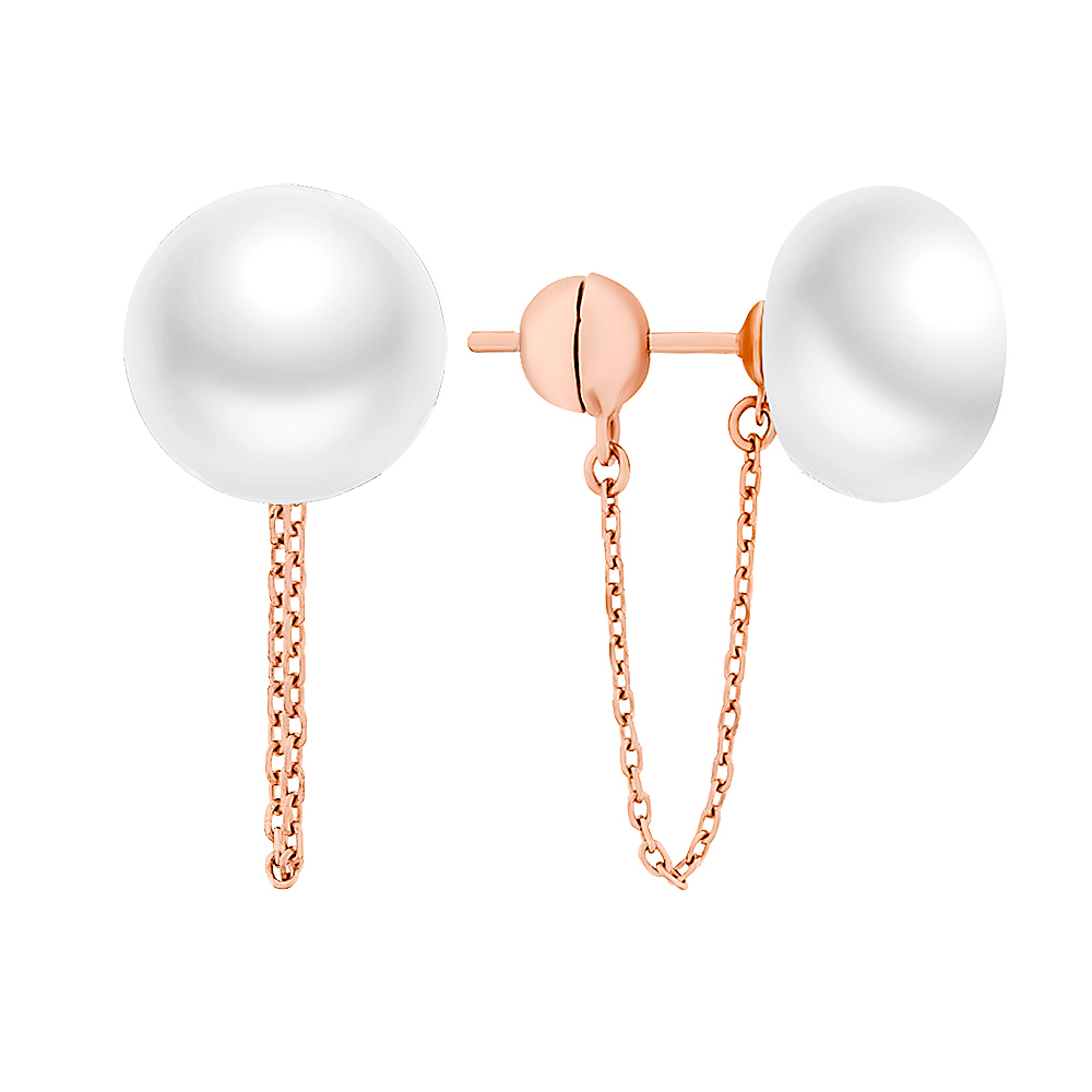 Ohrstecker aus Perlen, 925 Silber mit Kettchen, rosé vergoldet
