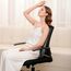 - Bringen Sie die Auflage an der Lehne Ihres Stuhls oder Sessels an und befestigen Sie sie sicher.