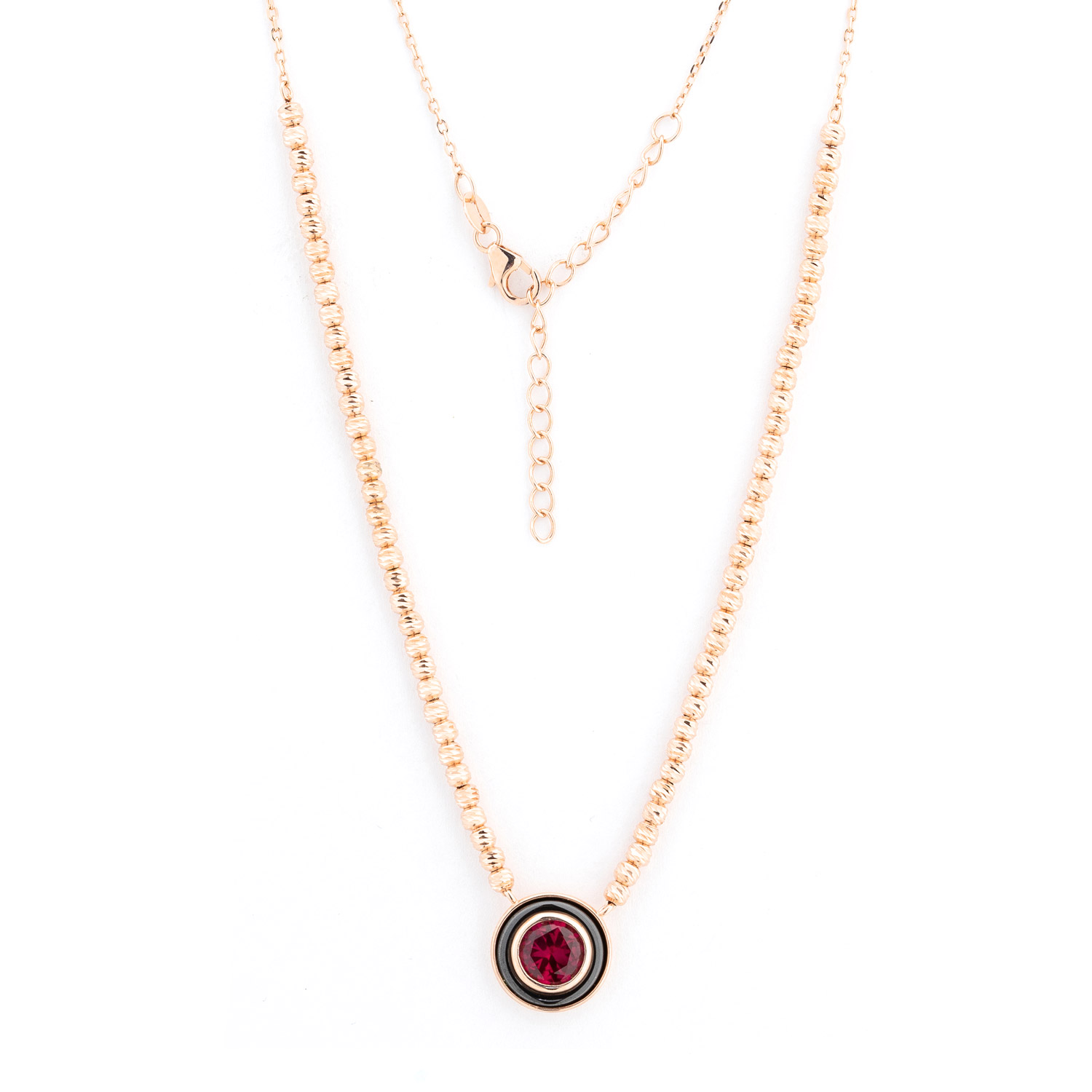 Collier aus vergoldetem 925 Silber mit rundem Zirkonia in weiß oder rot