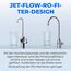 - JET-FLOW-RO-FILTER-DESIGN: Mit der Hochdruckpumpe und der mehrschichtigen Membran wird die Filtrationseffizienz erhöht und mehr Wasser auf einmal gefiltert. Außerdem ist das Risiko einer Verstopfung der RO-Membran geringer.