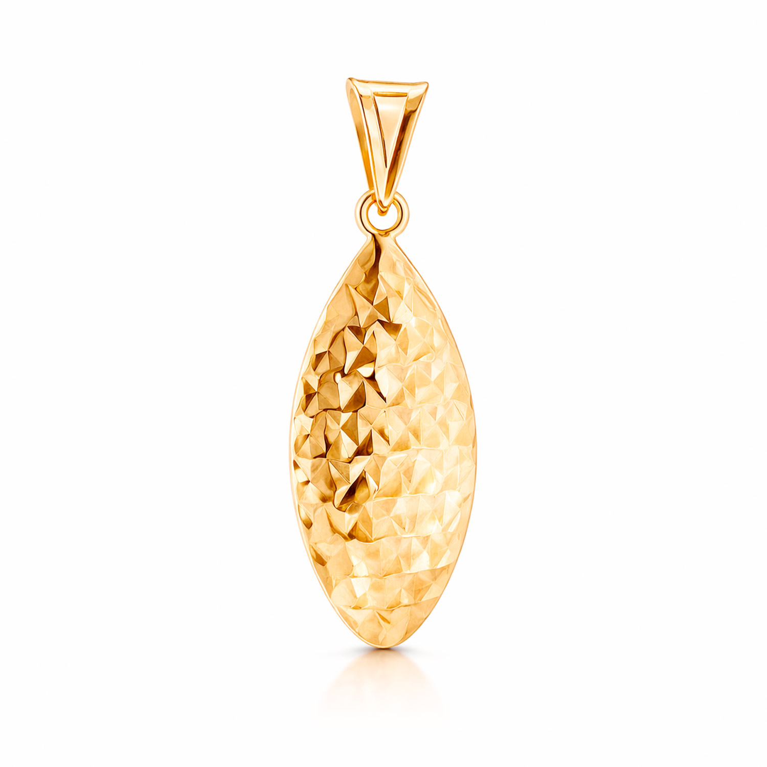 Der moderne Anhänger aus 585 Rotgold ist ein stilvolles Schmuckstück, das durch seine elegante Form und die kunstvoll gehämmerte Oberfläche beeindruckt. Das raffinierte Design verleiht dem Anhänger eine besondere Textur, die das Licht auf einzigartige Weise reflektiert und ihm einen subtilen Glanz verleiht.Gefertigt aus hochwertigem 14-karätigem Rotgold, besticht dieses Accessoire durch seine warme Farbgebung, die perfekt zu verschiedenen Hauttönen passt und sowohl zu alltäglichen Outfits als auch zu besonderen Anlässen getragen werden kann. Der Anhänger hat eine tropfenähnliche Form (konkav an der Rückseite), die modern und zugleich zeitlos wirkt, sodass er sich vielseitig kombinieren lässt, sei es mit einer schlichten Kette oder als Teil eines aufwendigen Schmuckensembles.