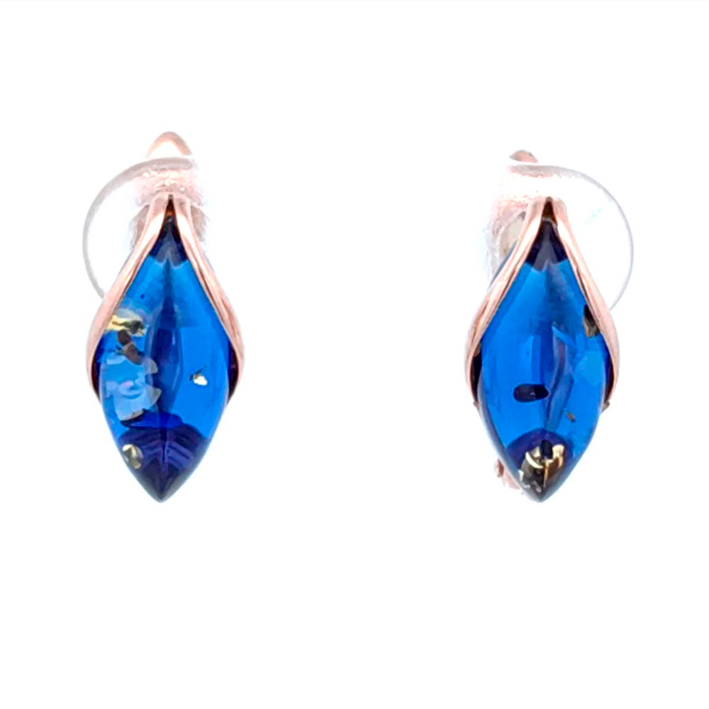 Tauchen Sie ein in die faszinierende Welt des blauen Bernsteins! Diese exquisiten Ohrringe aus vergoldetem 925 Sterlingsilber präsentieren die seltene Blueberry-Varietät des Baltischen Bernsteins in einem einzigartigen Blauton. Der edle englische Verschluss garantiert nicht nur perfekten Sitz, sondern verleiht dem Design zusätzliche Eleganz.Das Besondere an unserem blauen Bernstein: