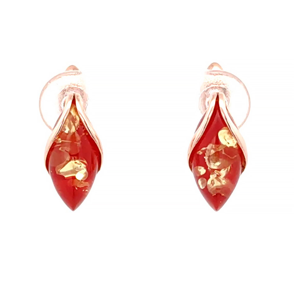 Ohrringe aus vergoldetem 925 Silber mit rot-gelben Bernsteinen