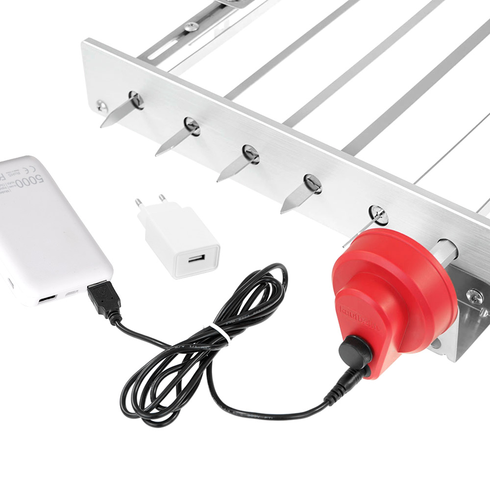 ACHTUNG: Der Motor funktioniert mit maximal 300 g Gewicht pro Spieß