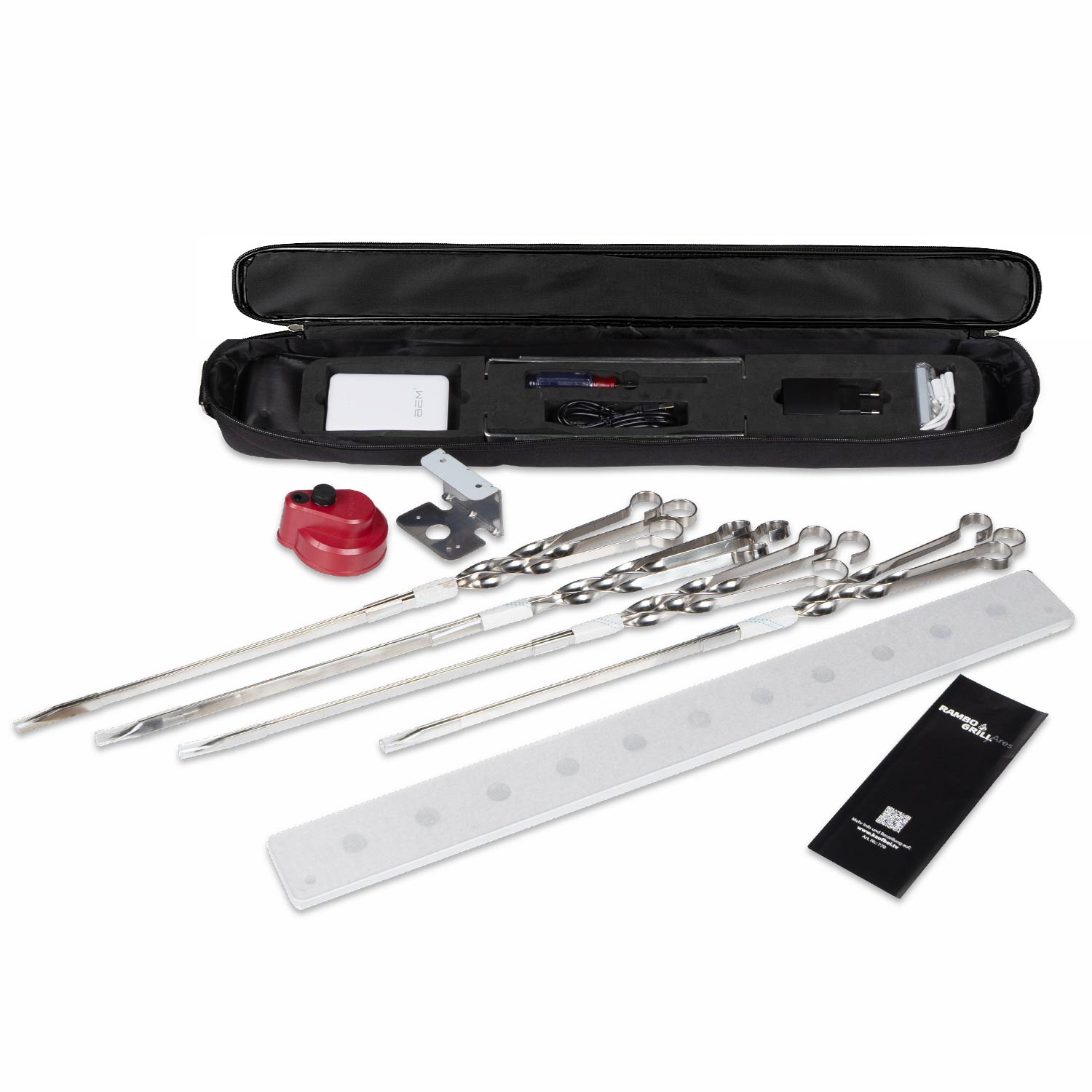 • Praktische Tragetasche – Inkl. 12 Edelstahl-Spießen & Powerbank (5000 mAh)