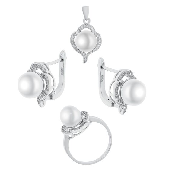 Schmuckset aus 925 Silber mit Perlen – Ohrringe, Anhänger und Damenring