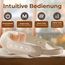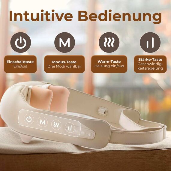 Im Inneren des Massageschals sind sechs Massageköpfe eingebaut. Form und Position dieser Massageköpfe imitieren die Massage durch die menschliche Hände.Wenn der Massagemodus aktiviert ist, beginnen die Massageköpfe zu massieren, wobei sie auf Schlüsselbereiche wie die Halswirbelsäule, den Nacken und die Trapezmuskeln abzielen. Sie führen rhythmische Knetbewegungen mit einstellbarer Intensität aus: von einem sanften, beruhigenden Modus für die tägliche Entspannung bis hin zu einem etwas stärkeren Modus für die Tiefenmassage verspannter Muskeln, wie die Hände eines professionellen Masseurs.