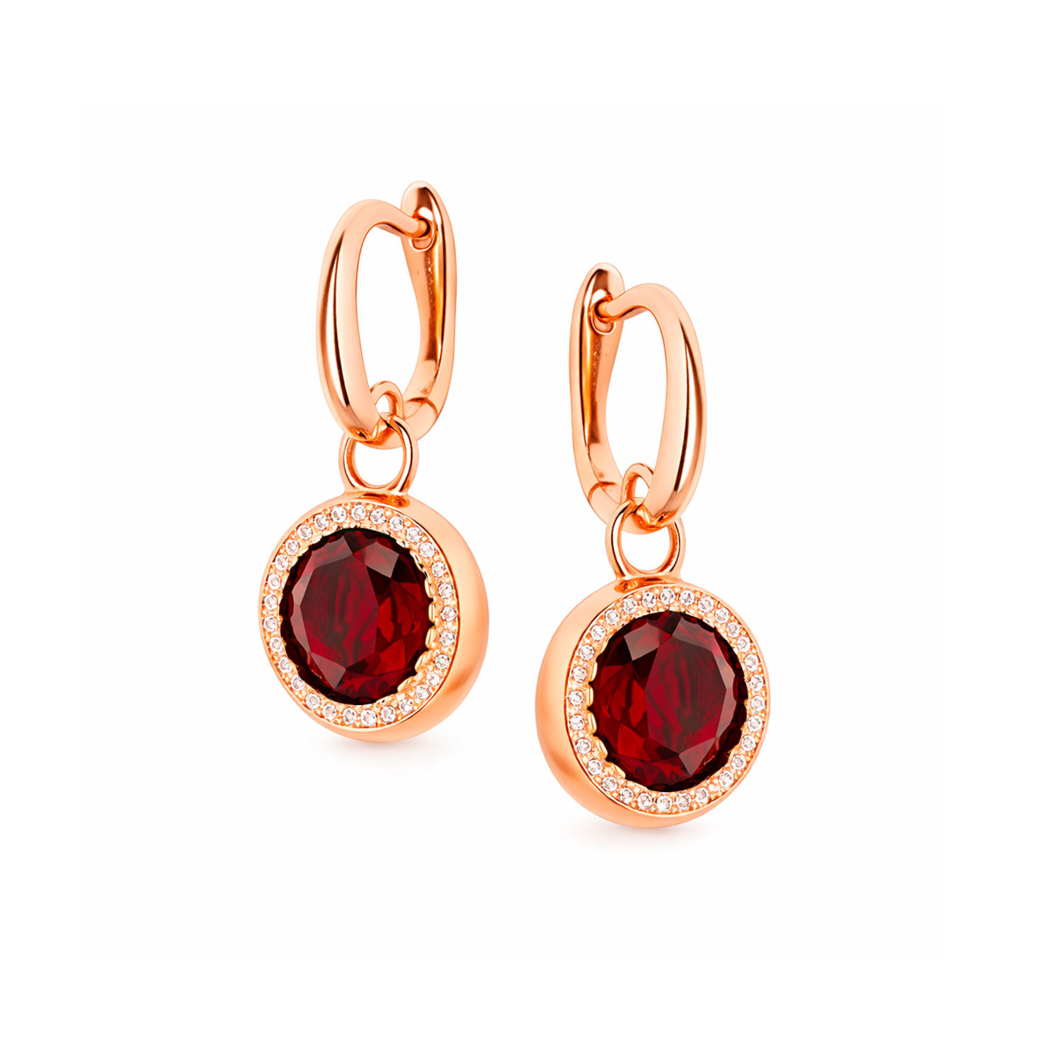 Runde Ohrringe aus 925 Silber mit blauen und farblosen Zirkonia, rotvergoldet