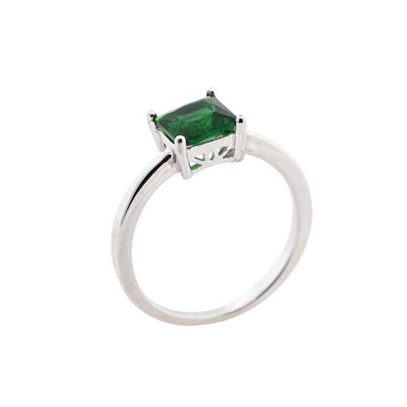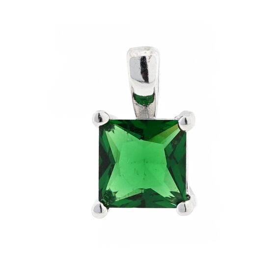 Schmuckset aus 925 Silber mit grünen Zirkonia: Ohrringe + Anhänger + Damenring (quadratisch) Gr. 17mm