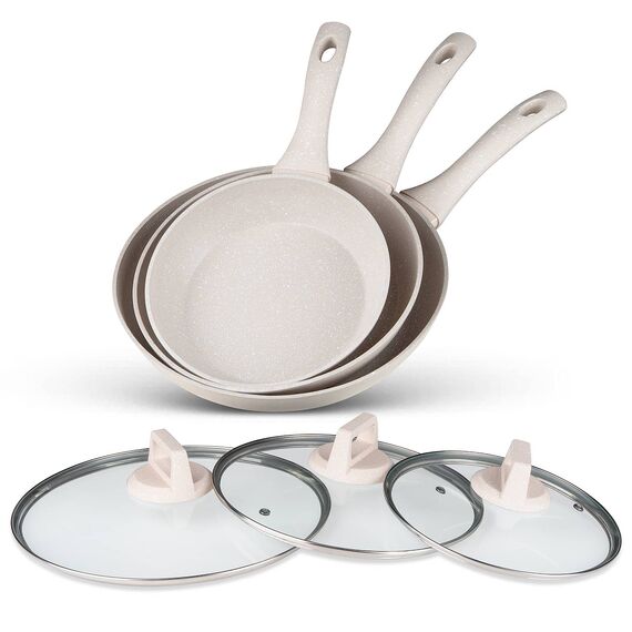 - Antihaftbeschichtung ohne PFOA/PFAS - Die hochwertigen Aluminiumpfannen verfügen über eine sichere Antihaftbeschichtung, die das Kochen erleichtert und die Reinigung besonders einfach macht.