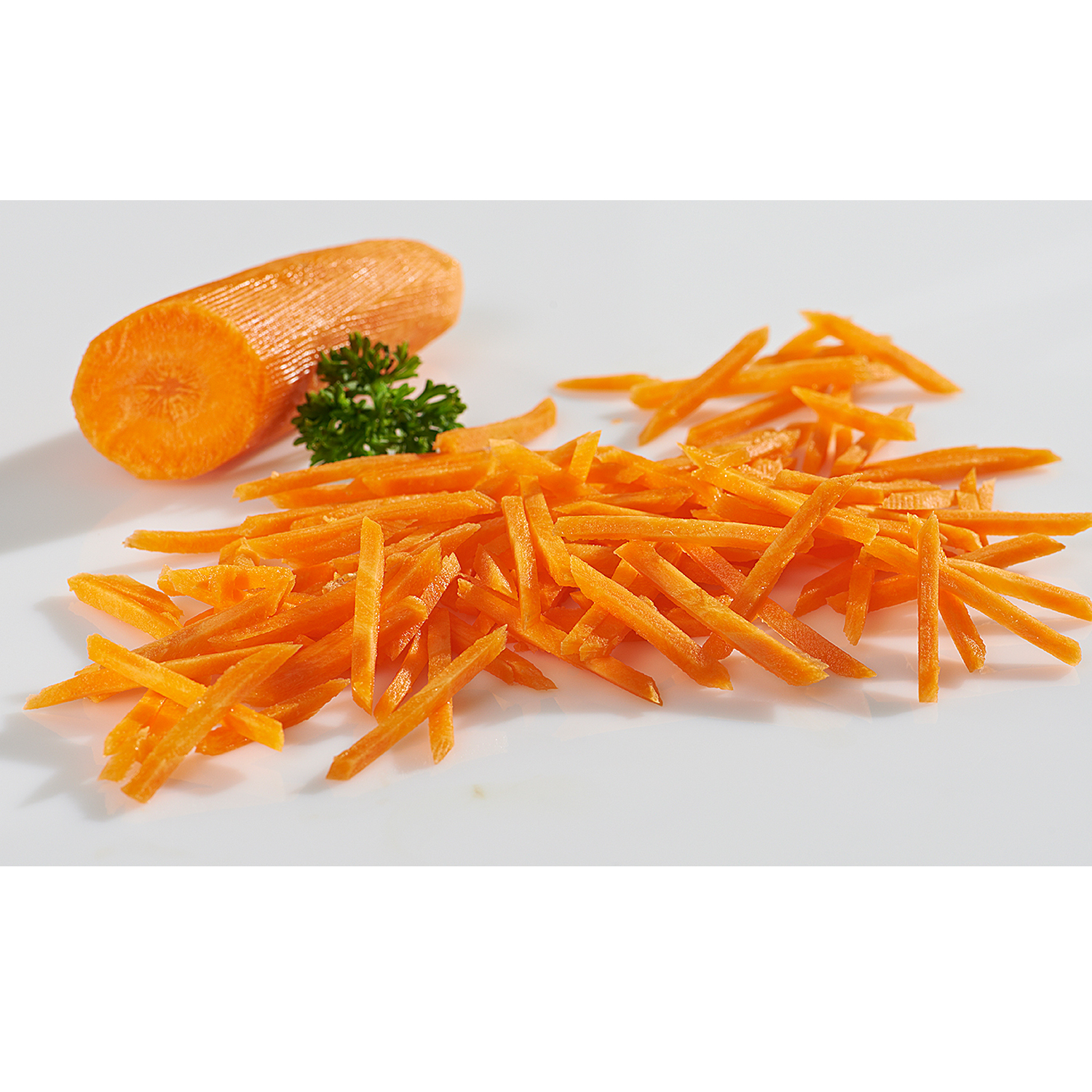 Der Einsatz mit kleinen Messern schneidet Ihr Produkt in einen 3,5 mm Strohhalme. Lang oder kurz. Achten Sie darauf, mit welcher Seite Sie das Gemüse auf den Gemüseschneider legen.