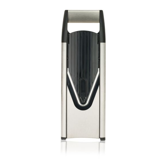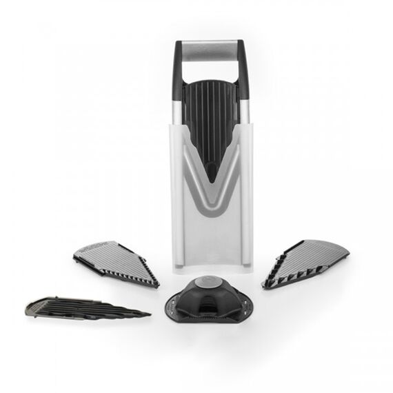 V6 ExclusiveLine hat eine hohe Funktionalität und ein modernes, stilvolles Design, das jede Küche schmückt. Wenn Sie dicke, dünne oder sehr dünne Scheiben, Suppenwürfel und Eintopf oder für Pommes Frites benötigen, hilft Ihnen dieser Gemüseschneider. 3,5 mm breite und 7 mm breite Klingen gehören zum Lieferumfang dieses Gemüseschneiders, zusätzlich zum Standardeinsatz.Darüber hinaus wird dieser Gemüseschneider mit einer Box zur Aufbewahrung von Beilagen und einem Sicherheitsfruchthalter geliefert.