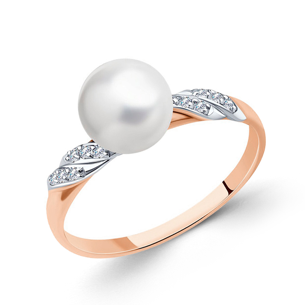 Damenring aus 585 Rotgold mit Süßwasser-Perle und Zirkonia von SOKOLOV Gr-17.5mm