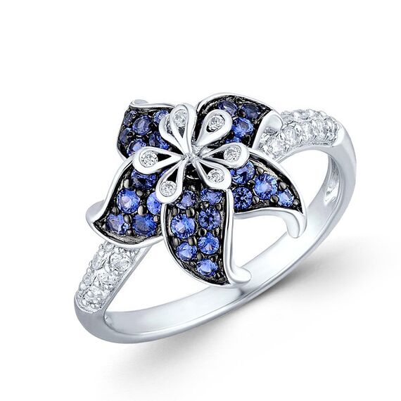 Sokolov Damenring Blume aus 925 Silber mit blauen und weißen Zirkonia
