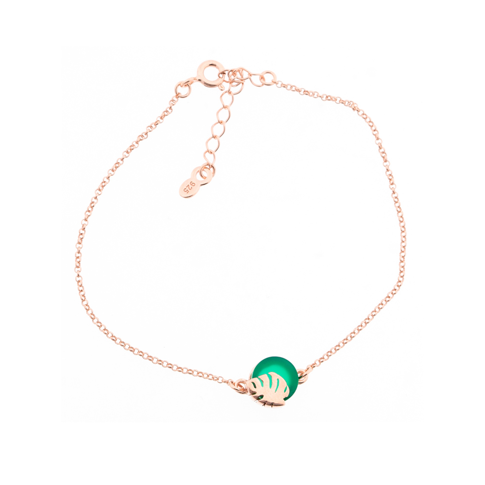 Armkette aus 925 Silber mit grünem Achat, rosévergoldet