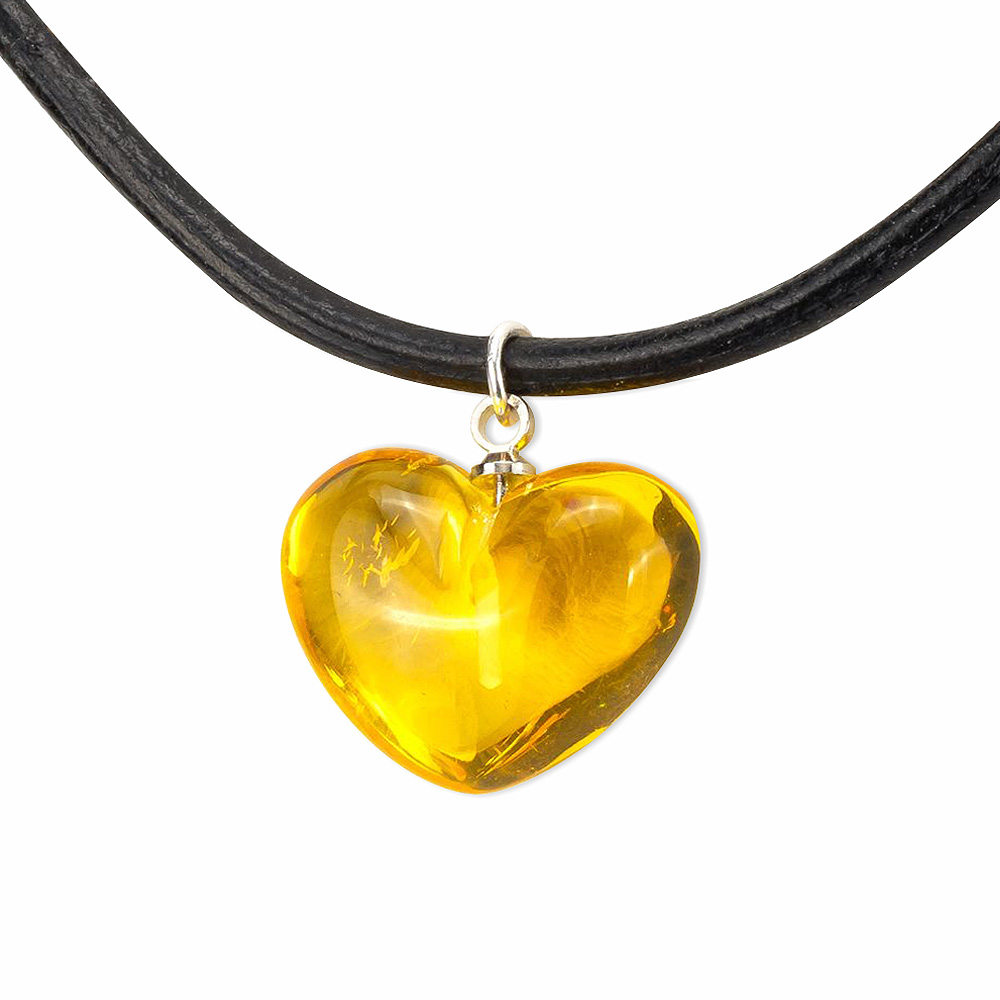 Herz Anhänger aus Bernstein am Lederband