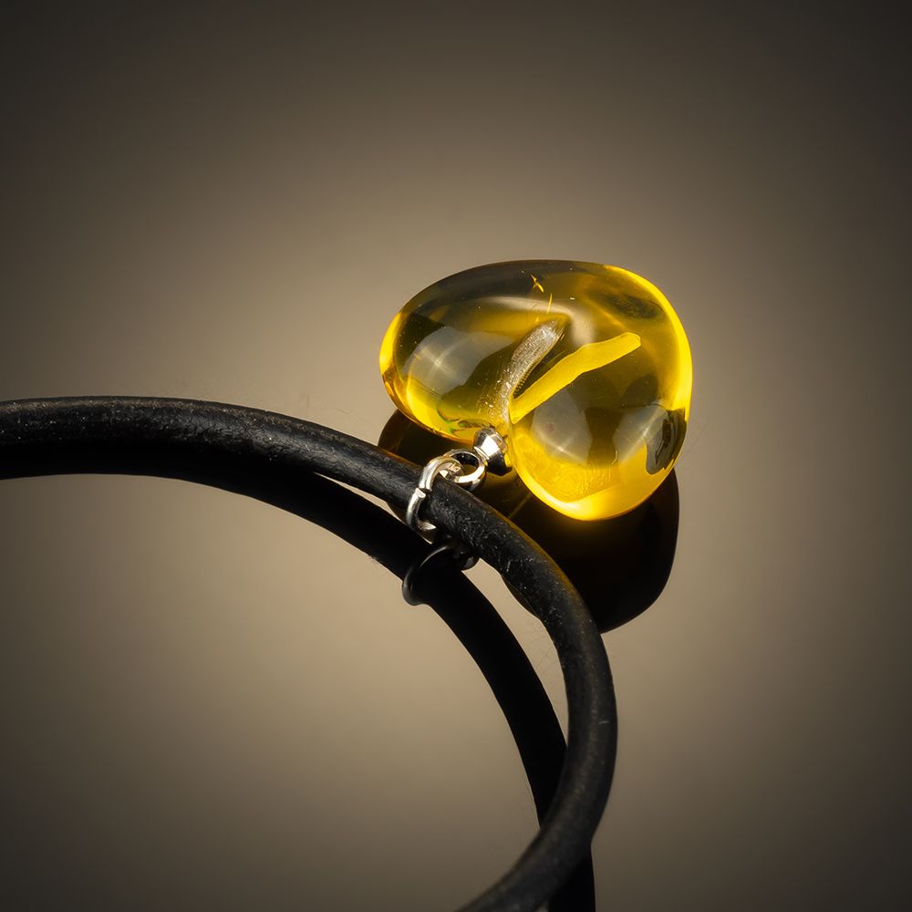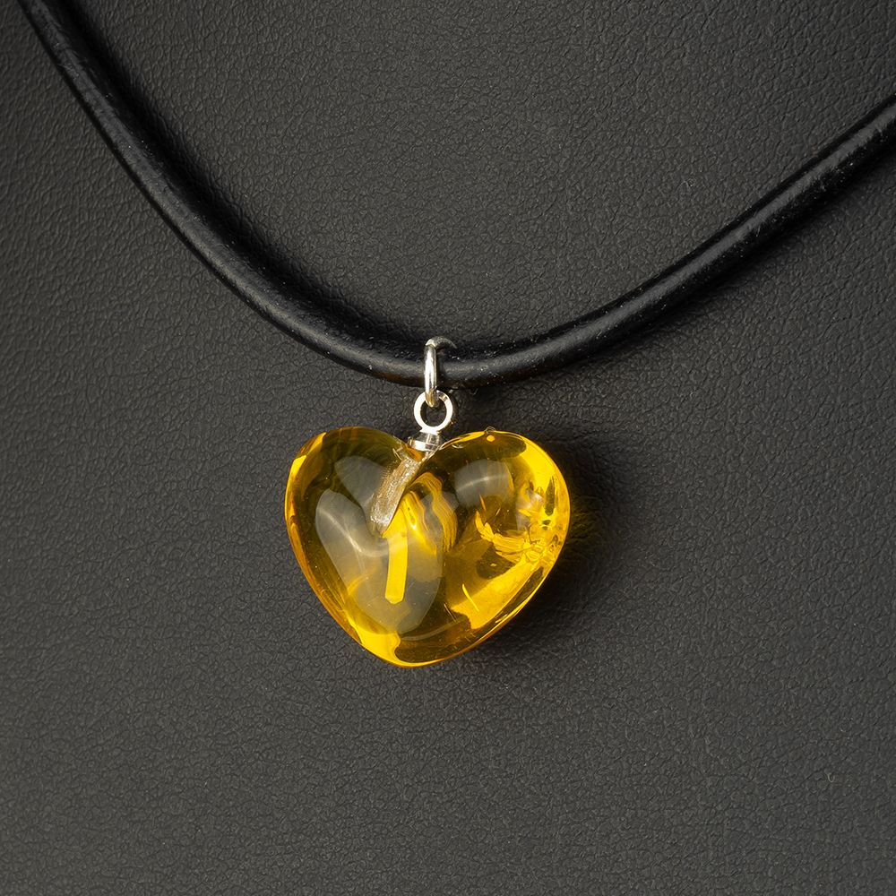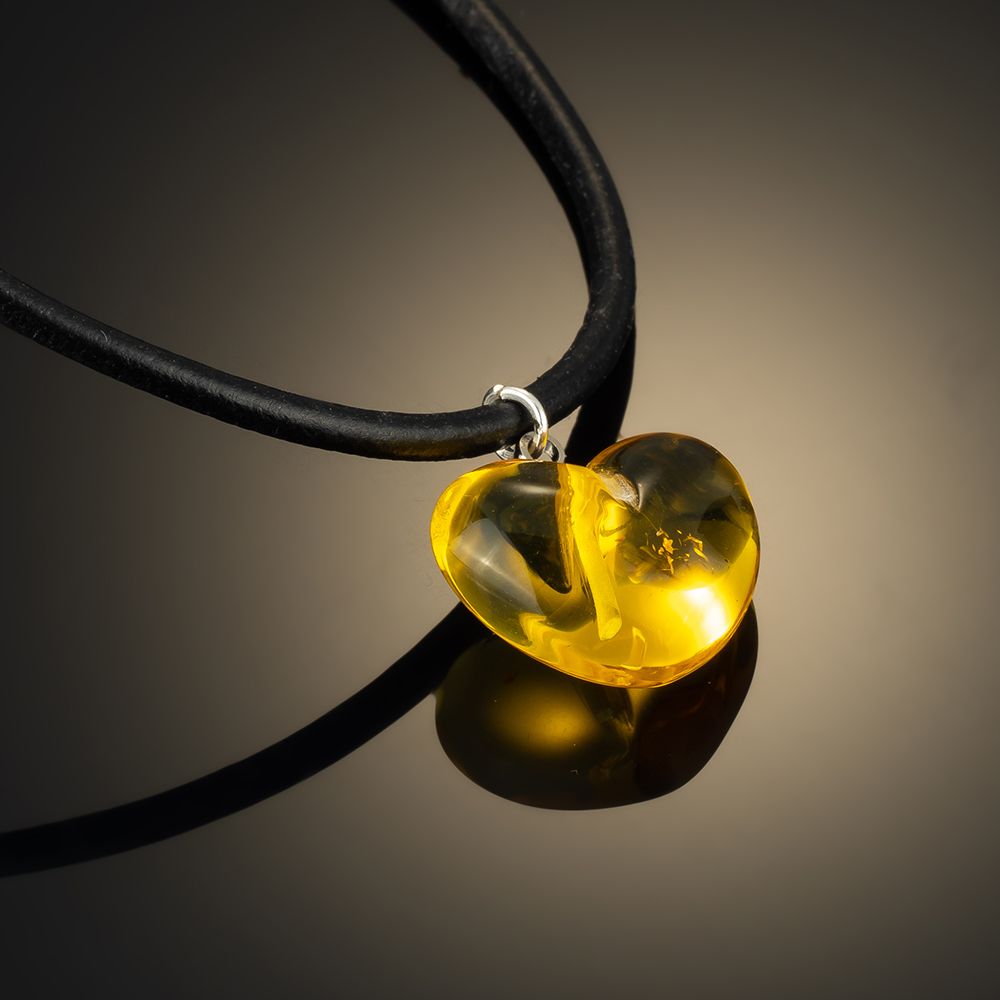 Eleganter Anhänger 'Herz' aus Bernstein am Lederband