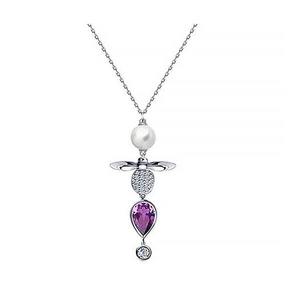 Collier aus 925 Silber mit Swarovski-Perlen, lila Sitall und farblosen Zirkonia