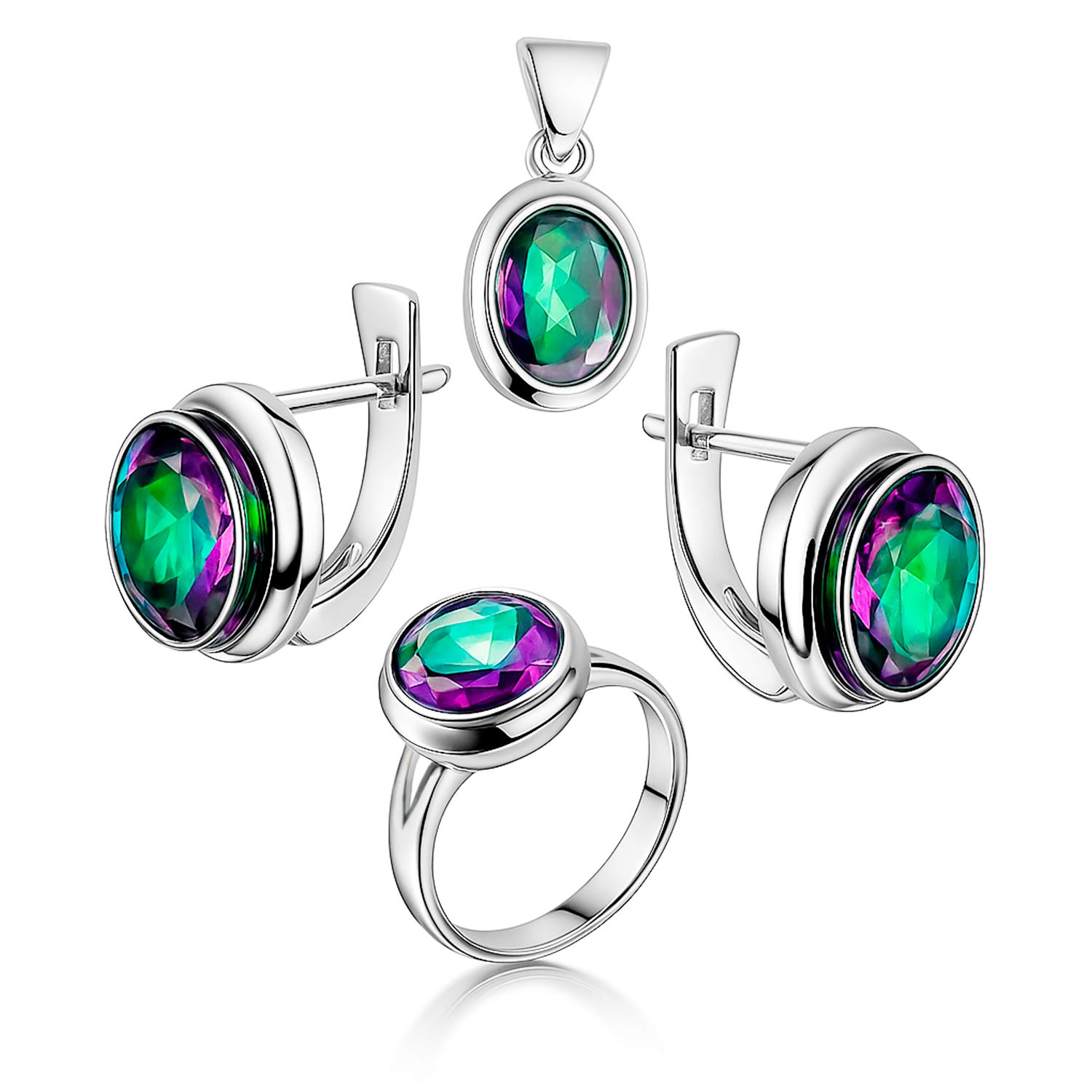 Schmuckset aus 925 Silber mit Mystic Topaz: Ohrringe + Anhänger + Damenring