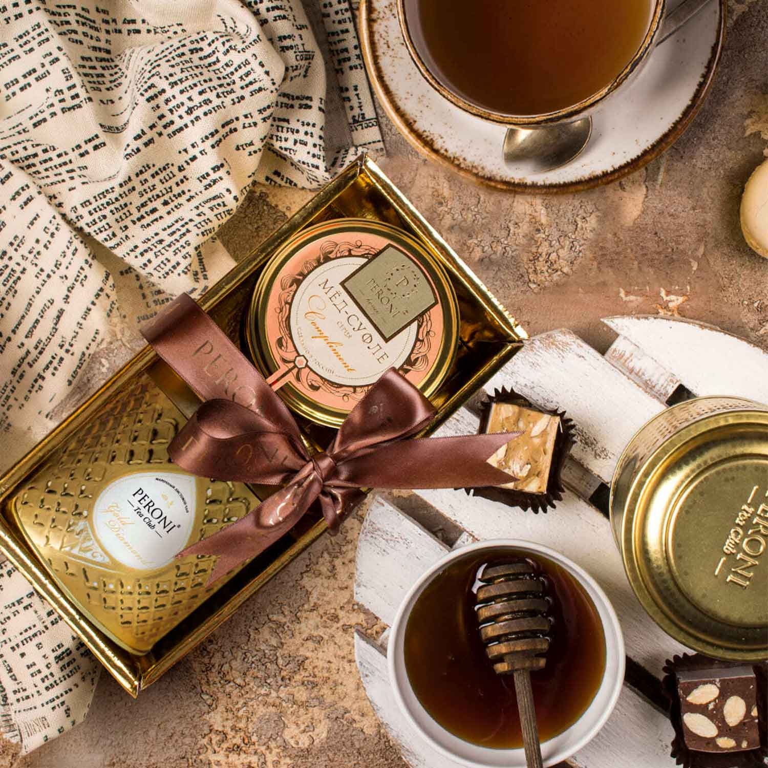Peroni Honig-Soufflé Set "Goldene Teestunde" Mango-Passionsfrucht 250g + Masalatee 70g