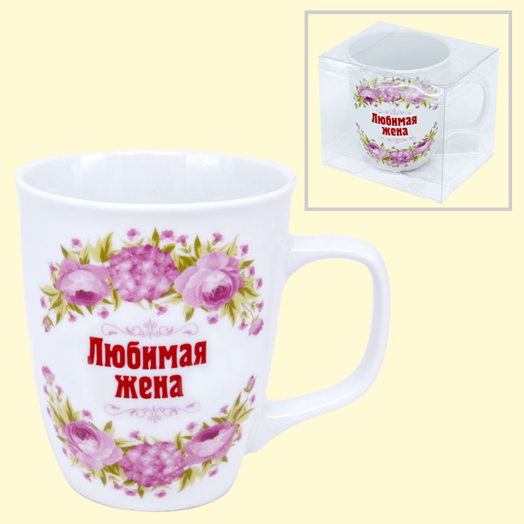 Der Becher ist aus umweltfreundlichem, hochwertigem Porzellan mit feinem Glanz gefertigt. Er hat ein attraktives thematisches Design in Form der Aufschrift auf russisch "Liebste Ehefrau". Dieser stylische Becher ist ideal für den täglichen Bedarf - im Büro oder Zuhause.- Porzellanbecher mit einem Spruch: "Liebste Ehefrau".