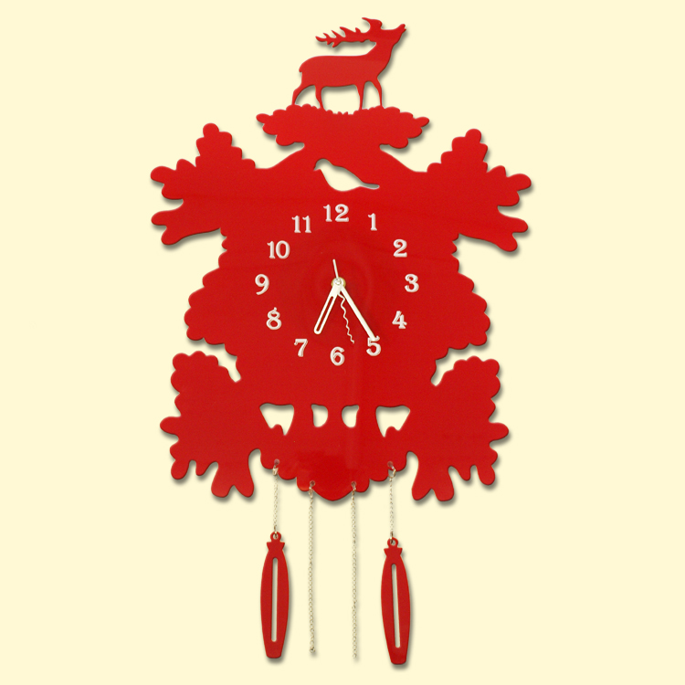 Wanduhr "Hirsch im Wald" rot, 40 x 40 cm