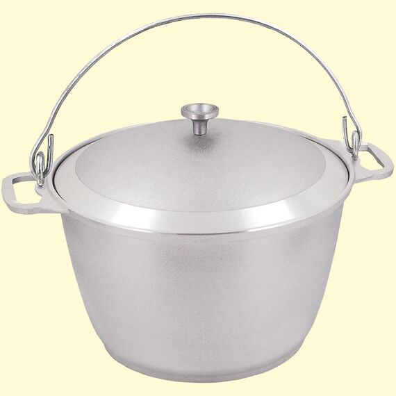 - Dank einem bequemen Metallgriff ist es möglich, den Kessel über einem Feuer aufzuhängen, wenn man auf einem Campingplatz kochen möchte und der flache Boden eignet sich perfekt, um den Kessel auch zu Hause auf einem Herd benutzen zu können.