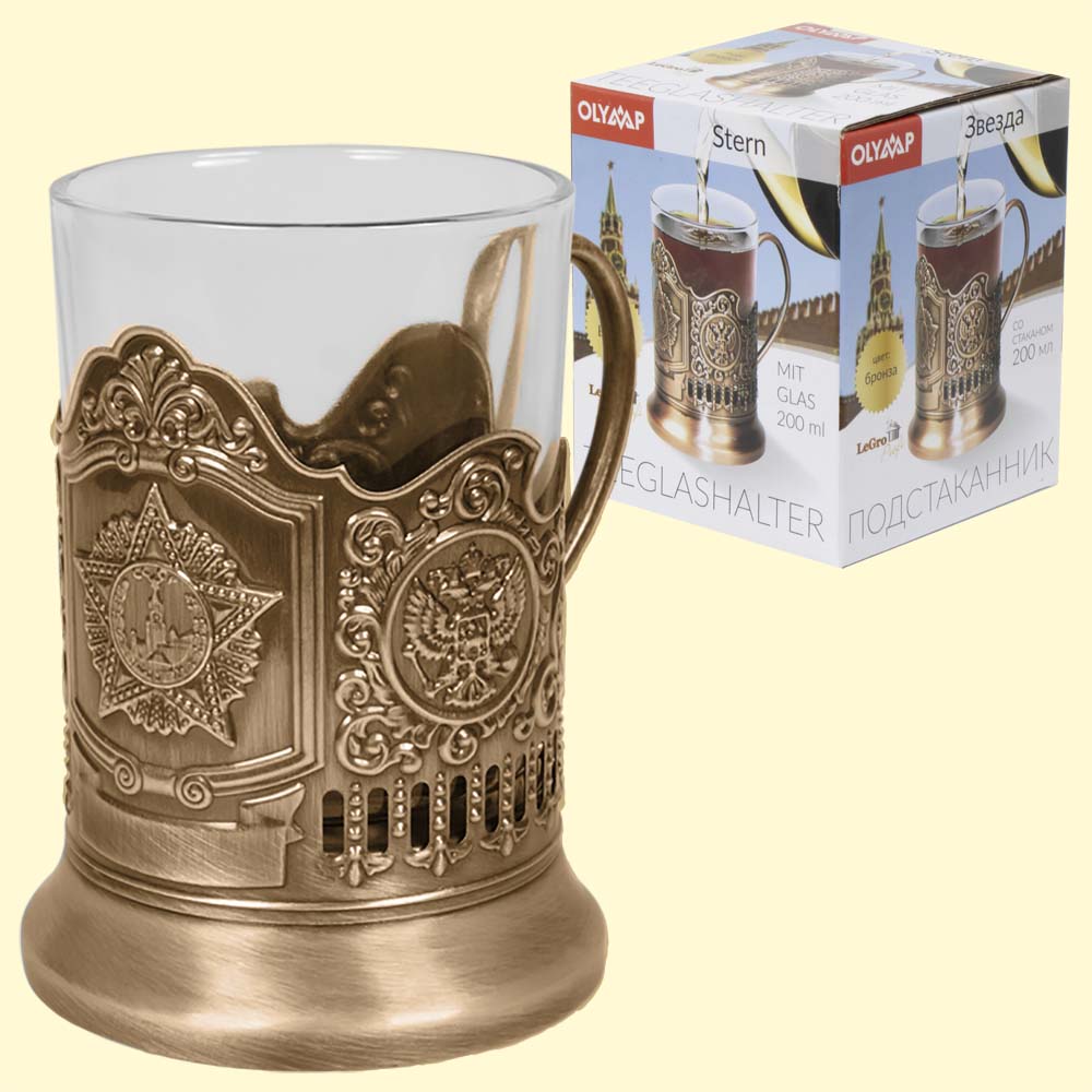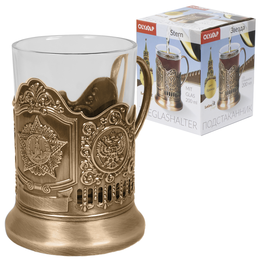 Teeglashalter in Bronze Stern mit Teeglas, 200 ml *