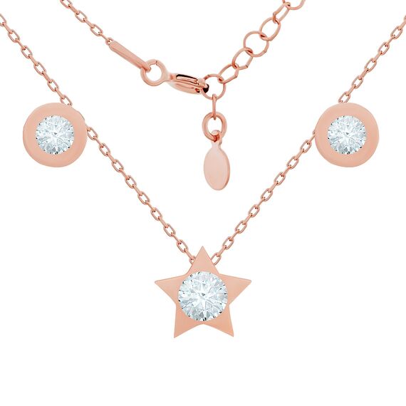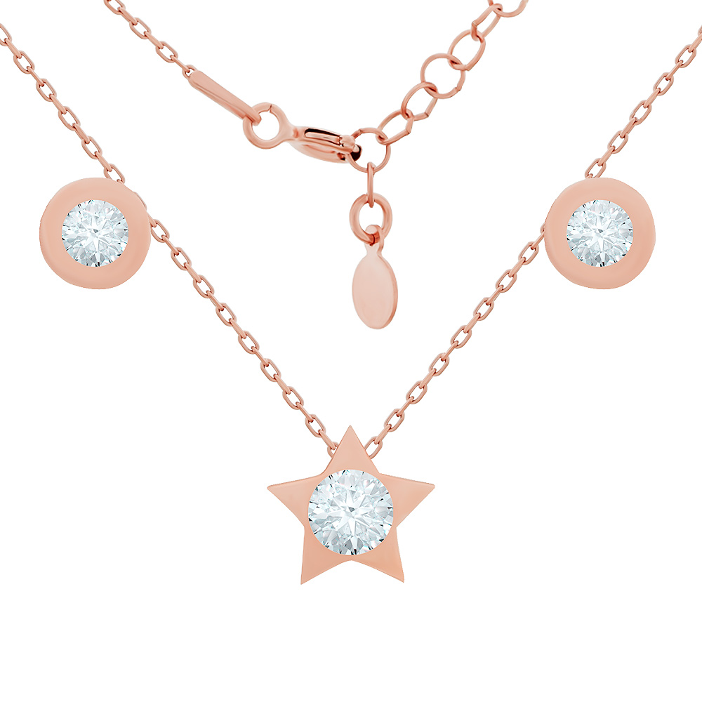 Anhänger "Stern von Bethlehem" mit Swarovski Kristall aus 925 Silber auf einer Silberkette (mit Verlängerungskettchen), rosévergoldet
