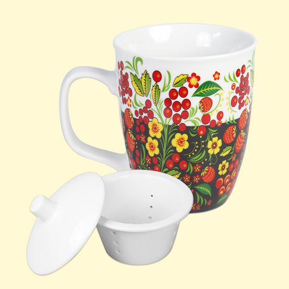 Hochwertiges 6-teiliges Porzellan-Set "Hohloma" für Teeliebhaber. Besteht aus 4 Tassen je 250 ml und 2 Teesiebe 8 cm groß. Passt perfekt für das Zubereiten von losen Tees.